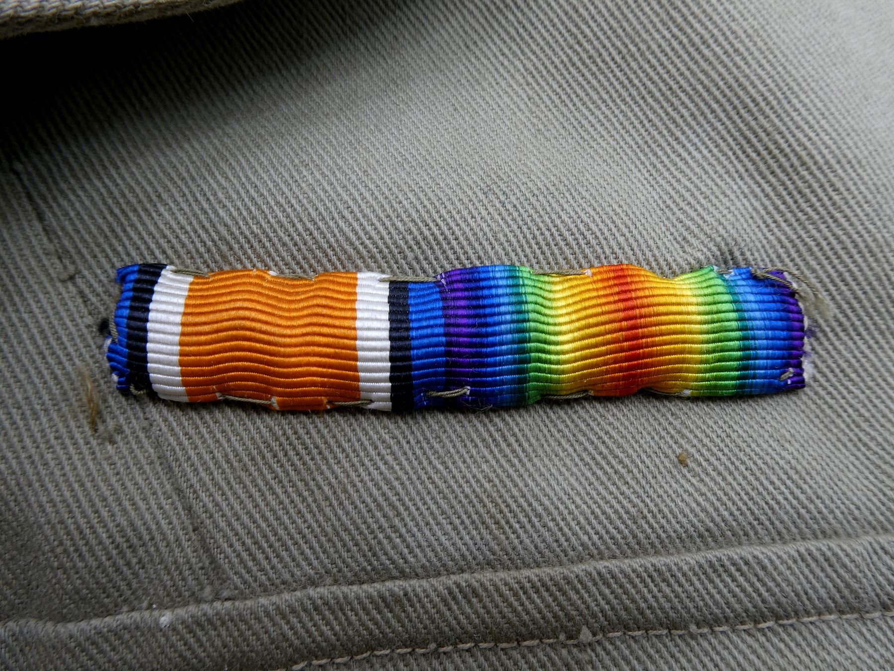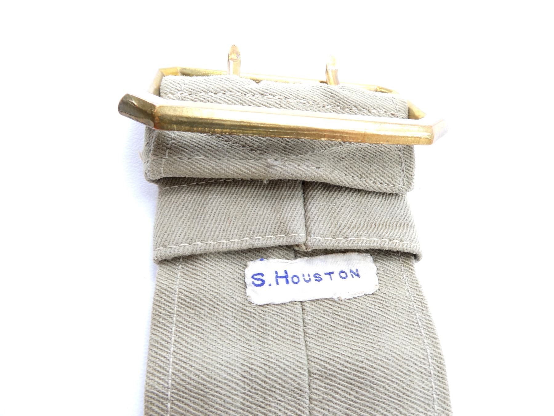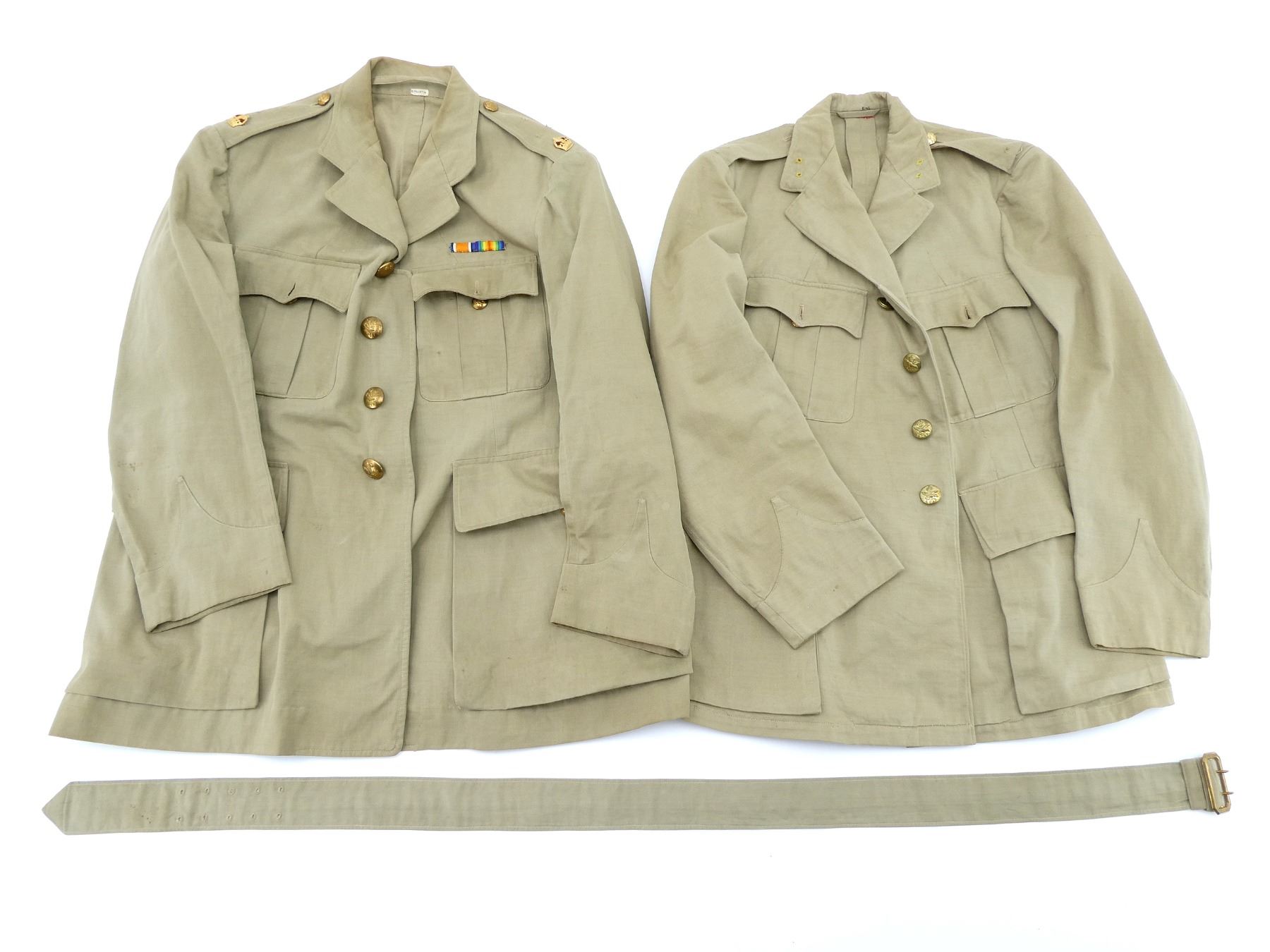 LOT INCLUDES; (1) RCAF KHAKI DRILL TUNIC, RIGHT POCKET INNER LABEL MARKED: "AUSTIN REED, OF REGENT STREET, NAME. J.A. KING", COLLAR MARKED: "KING", BRASS KING'S CROWN "R.C.A.F." BUTTONS, NO WAIST BELT, OPEN COLLAR, BUTTON FRONT, SHOWS AGE / WEAR, SHOULDER WIDTH APPROX. 15.5" & (1) KHAKI DRILL TUNIC WITH PRINCESS OF WALES OWN REGIMENT BRASS BUTTONS, WITH WAIST BELT, NAME TAG ON COLLAR MARKED: "S. HOUSTON", BRASS WITH RED FELT KING'S CROWN SHOULDER BADGES, WWI RIBBON BAR (BRITISH WAR MEDAL, VICTORY MEDAL), OPEN COLLAR, BUTTON FRONT, SHOWS AGE / WEAR, SHOULDER WIDTH APPROX. 17". SEE PHOTOS.
