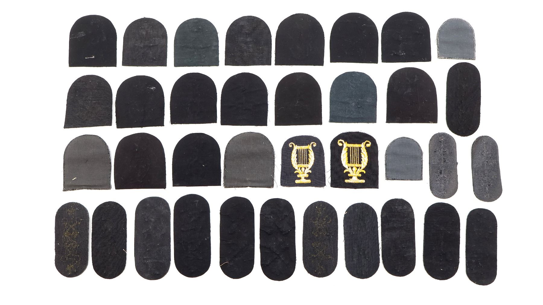APPROX. (36) PIECES, VARIOUS SIZES / COLOURS / STYLES, INCLUDES; ENGINEERING TECHNICIAN, ELECTRICIAN'S MATE, VICTUALLING STORESMAN, WEAPONMAN UNDERWATER, WEAPONMAN SURFACE, AVIATION TECHNICIAN, PAY WRITER, NAVAL STORESMAN, SHIP'S STORESMAN, RADIO MAN, ETC. SEE PHOTOS.