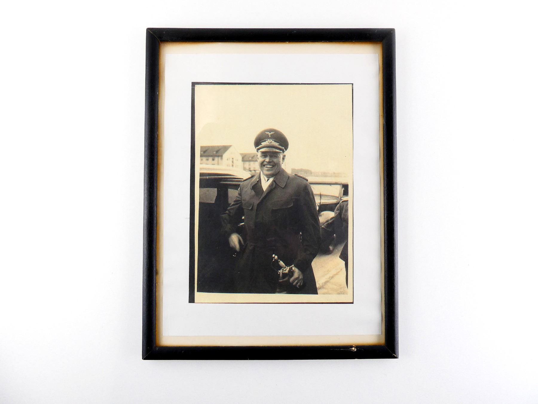 (1) FRAMED PHOTO OF WWII GERMAN FIELD MARSHAL ERHARD MILCH, NO VISIBLE MARKINGS, WOODEN FRAME, UNDER GLASS, APPROX. 12.75" X 9.75". SEE PHOTOS. *NO GUARANTEE ON GLASS FOR SHIPPING*