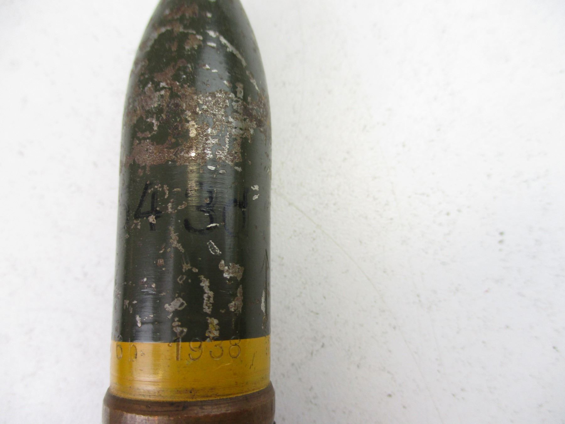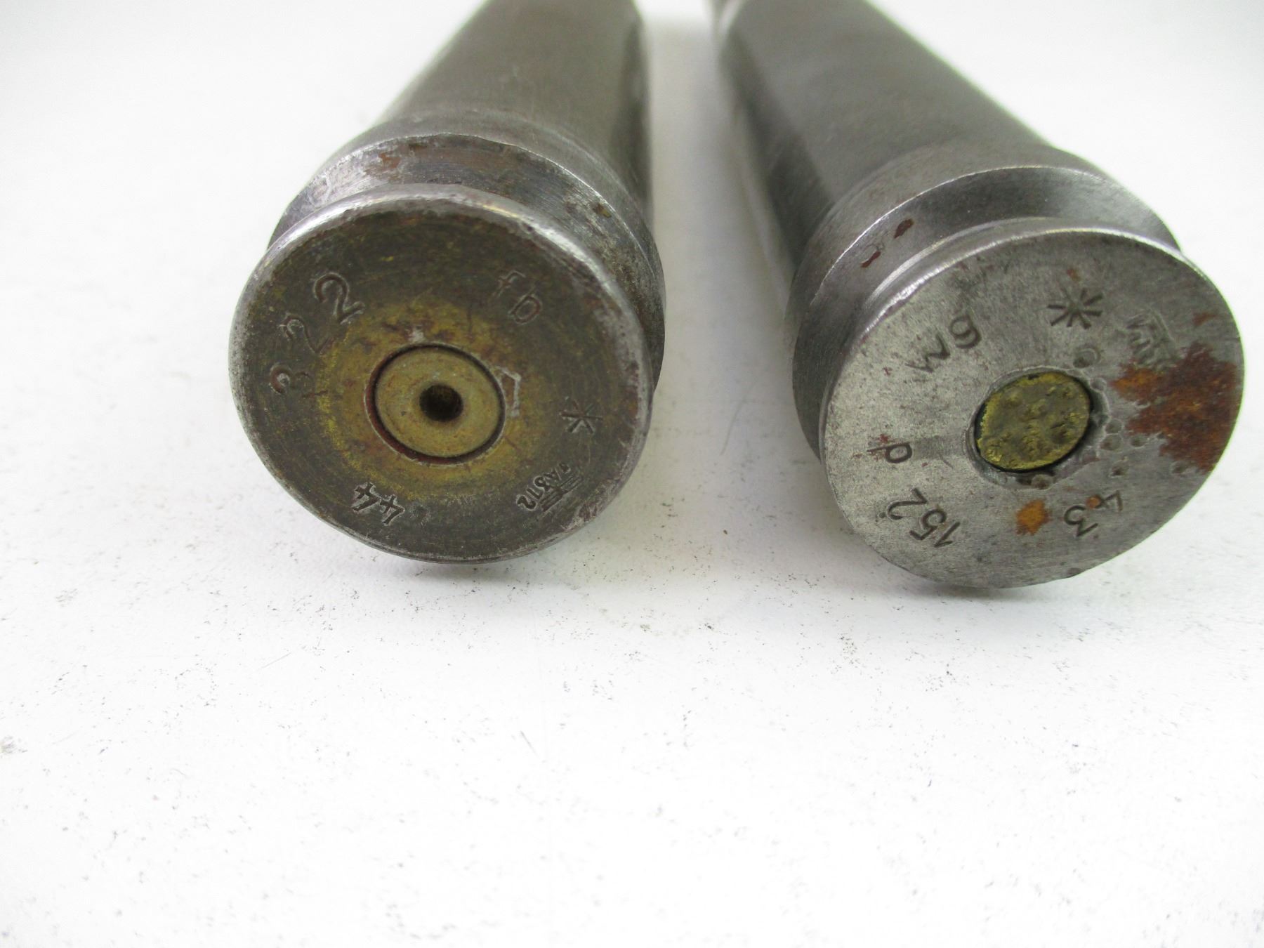 WWII GERMAN INERT 20MM ROUNDS , (2) STEEL CASES WITH PROJECTILES.  DATED 1943/44, VARIOUS MAKER AND WAA MARKS.  APPROXIMATELY 8".