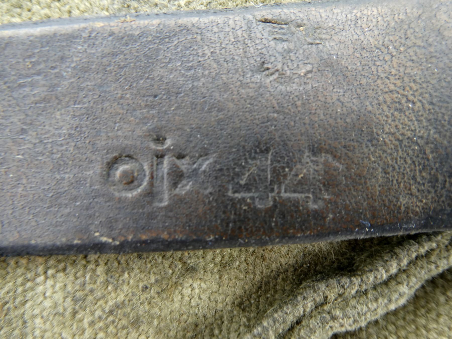 LOT INCLUDES; (2) MP44 MAG POUCHES, FITS 7.92 KURZ / STURMGEWEHR 44 MAGS, LEFT & RIGHT POUCH, 3-POCKETS, GREEN CANVAS / LEATHER, STEEL FITTINGS, BELT LOOPS ON BACK OF ONE MARKED: "STG 44", EAGLE SYMBOL "WAA311", "OIX 44", BELT LOOPS ON BACK OF OTHER POUCH MARKED: "STG 44", EAGLE SYMBOL "WAA???", "OIX 44", SHOWS AGE / WEAR. SEE PHOTOS.