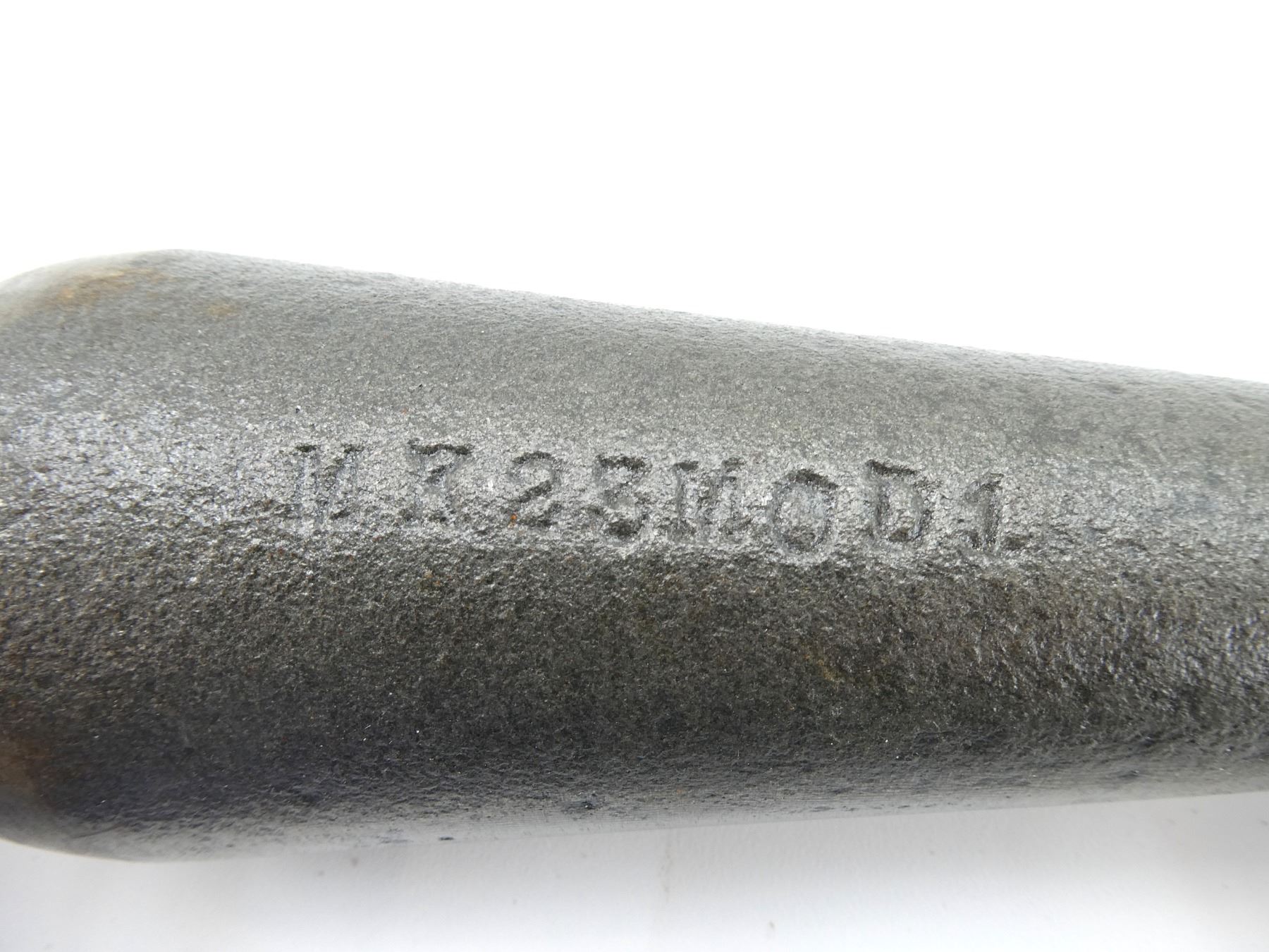 (1) CAST STEEL BODY WITH TAIL BAND, STRIKER CUP & COTTER PIN, MARKED: "MK23MOD1", APPROX. 2.5" DIA. & OVERALL LENGTH APPROX. 8.25". SEE PHOTOS.