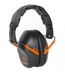 Walker's Pro Low Profile Passive Folding Muffs Black w/ Orange Logo. This listing is for one brand new, unopened, factory sealed unit. UPC: 888151011720.