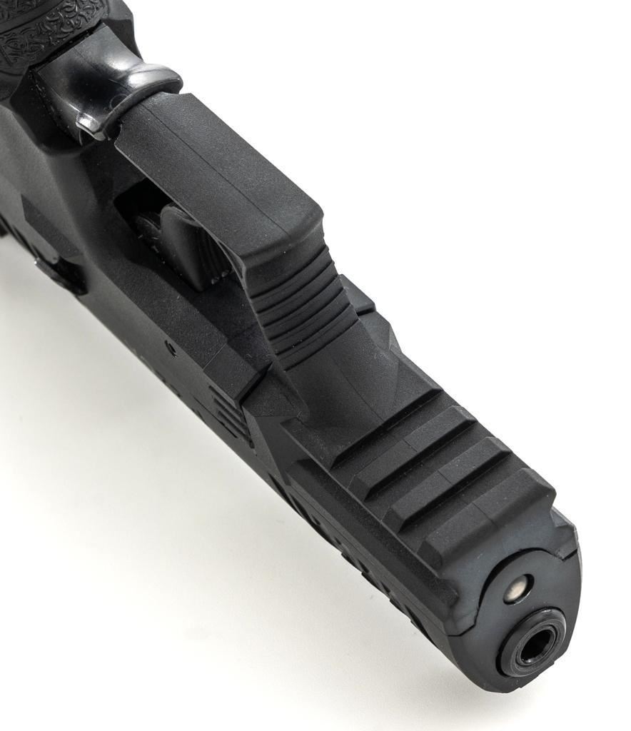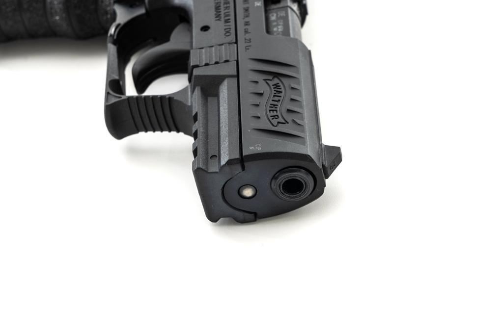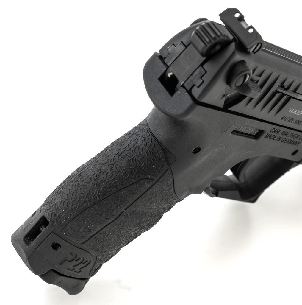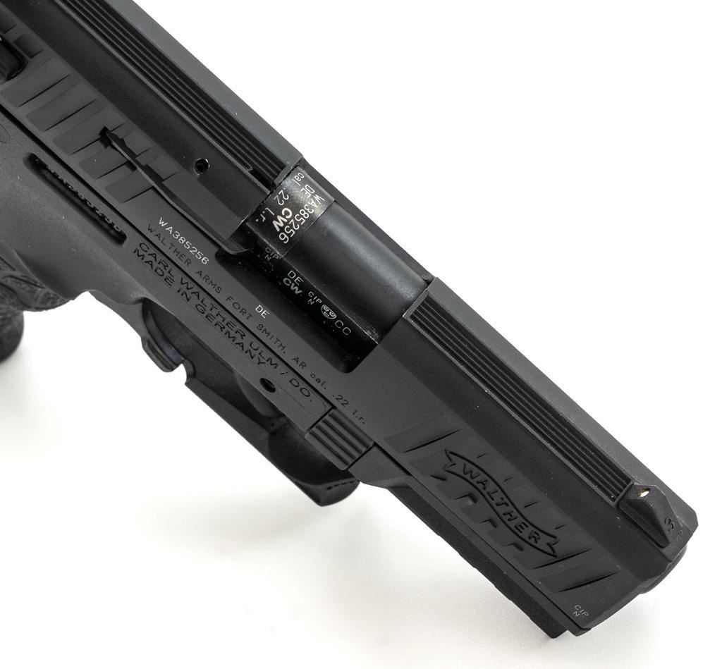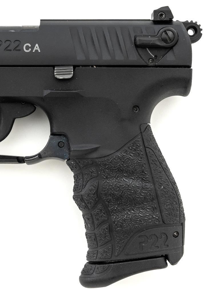 Walther P22CA Semi-Automatic Pistol, #WA385256, .22 LR cal., 3.5" barrel, double/single action, black slide, black composite frame, integral textured grips, white three-dot sights, lower accessory rail, frame extension, ambidextrous safety and mag release, with three (3) factory 10-rounds magazines. Mfgd 2022. In original hard case with matching end label and instruction manual. Consignor stated guide rod has been replaced with a Tandemkross stainless steel captured spring guide rod, the factory guide rod is not included. Condition is excellent, appearing near new, showing only light marks from handling. Action operates smoothly. Bore is bright with excellent rifling. Est.: $200-$300. (Modern/PPT)