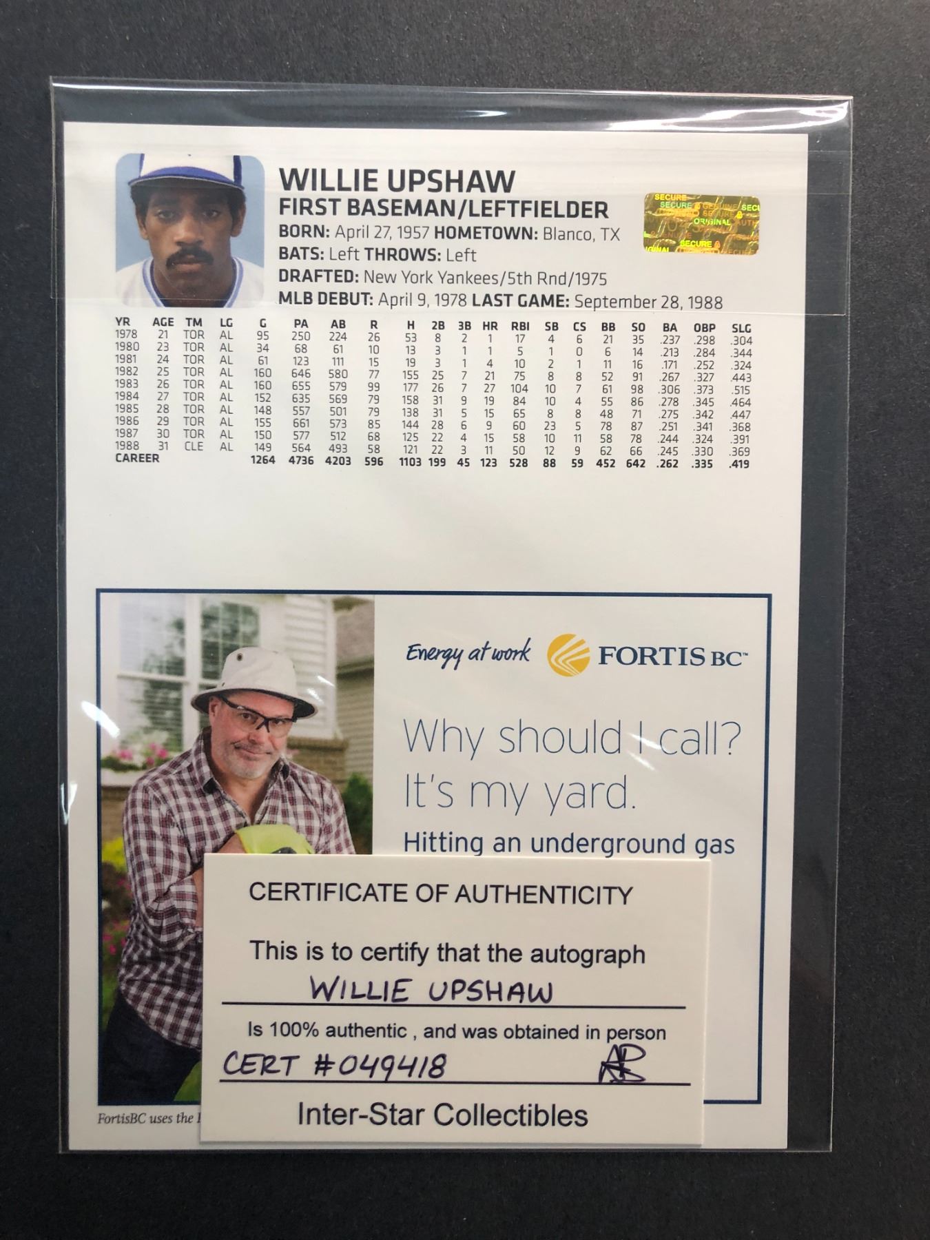 Willie Upshaw AUTOGRAPHED 5x7 Card - Blue Jays