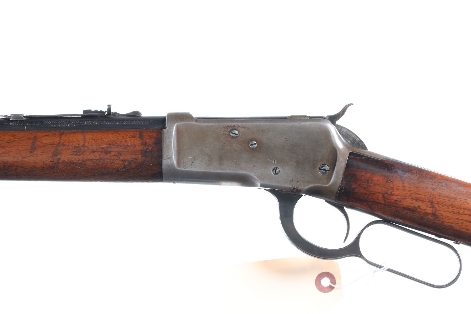 .25-20 WCF Serial # 4295 Winchester continuation of the famed 1892 rifle. Model 53 chambered for the 25-20 WCF Ctg. Good to very good overall condition. Mechanically fine. Manufactured 1925. Barrel 22" C&R