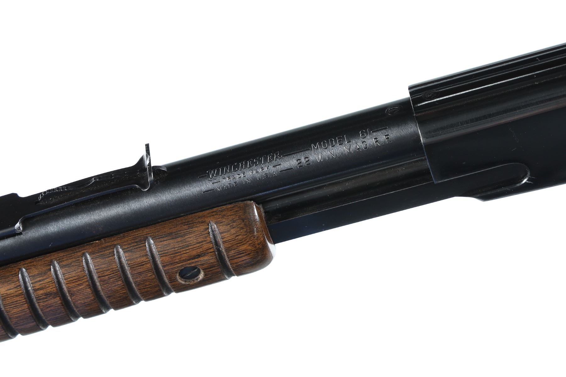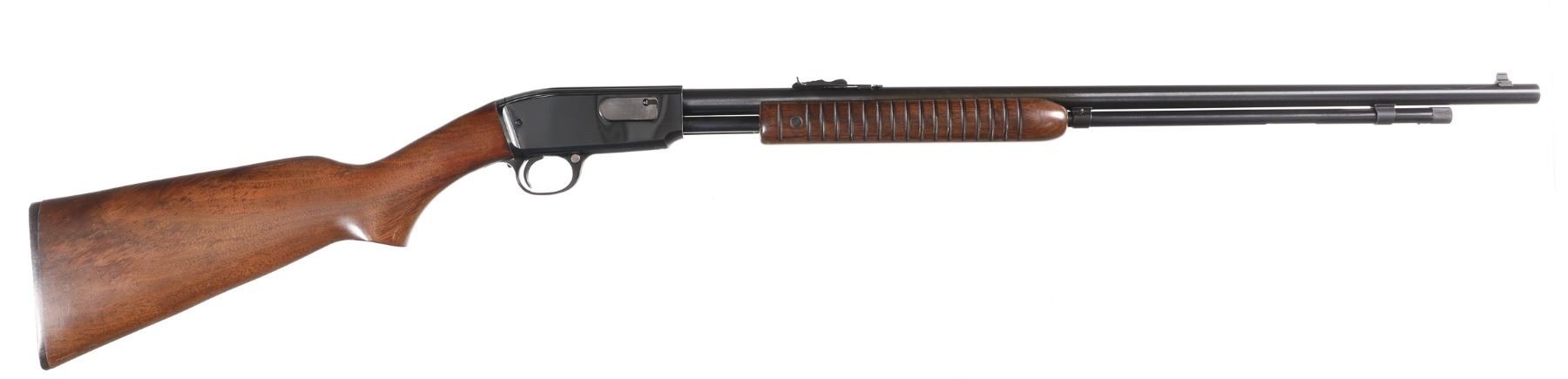 .22 WMRF Serial # 342907 Superb and very desired Winchester Model 61 22 Magnum (22 MRF) Blue finished pump action rifle with tube feed, blade front sight with elevation adjustable sporting rear sight. Varnished walnut 2 piece stocks. Excellent overall condition, mechanically excellent. Manufactured in 1962. Mechanically excellent. C&R Barrel 24" C&R