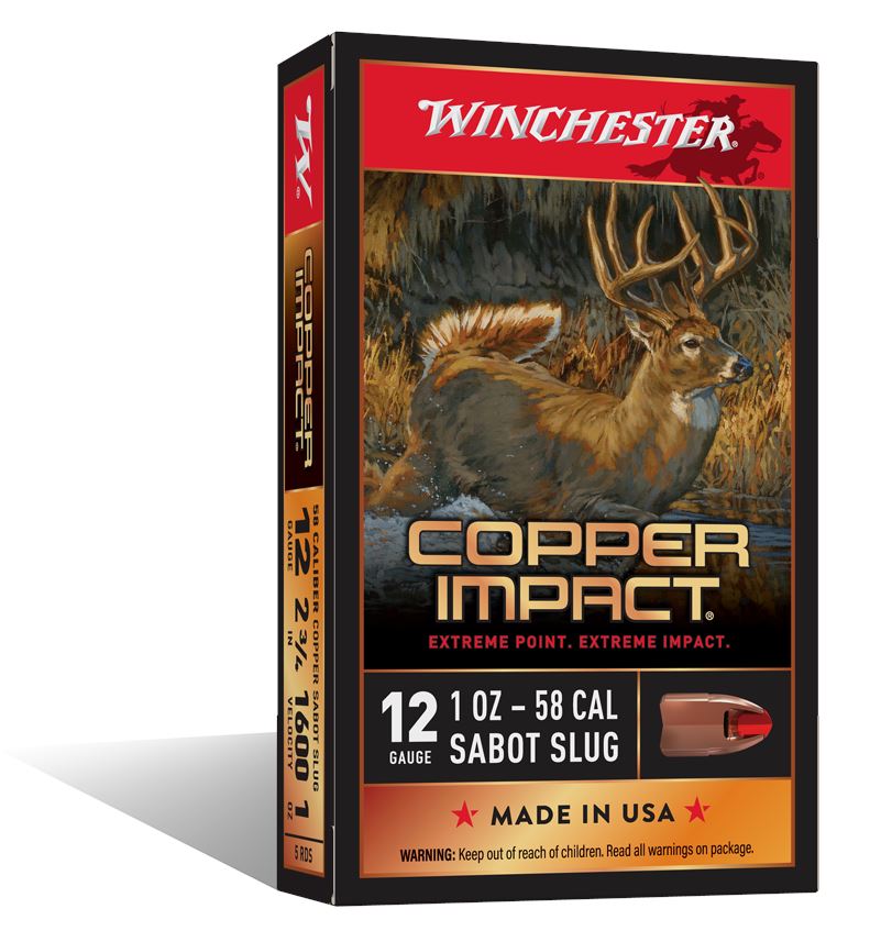 Winchester Copper Impact 12 Gauge 2 3/4" 58 Cal Sabot Slug Lead Free (5 Rounds). This listing is for one brand new, unopened, factory sealed unit. UPC: 20892025820.