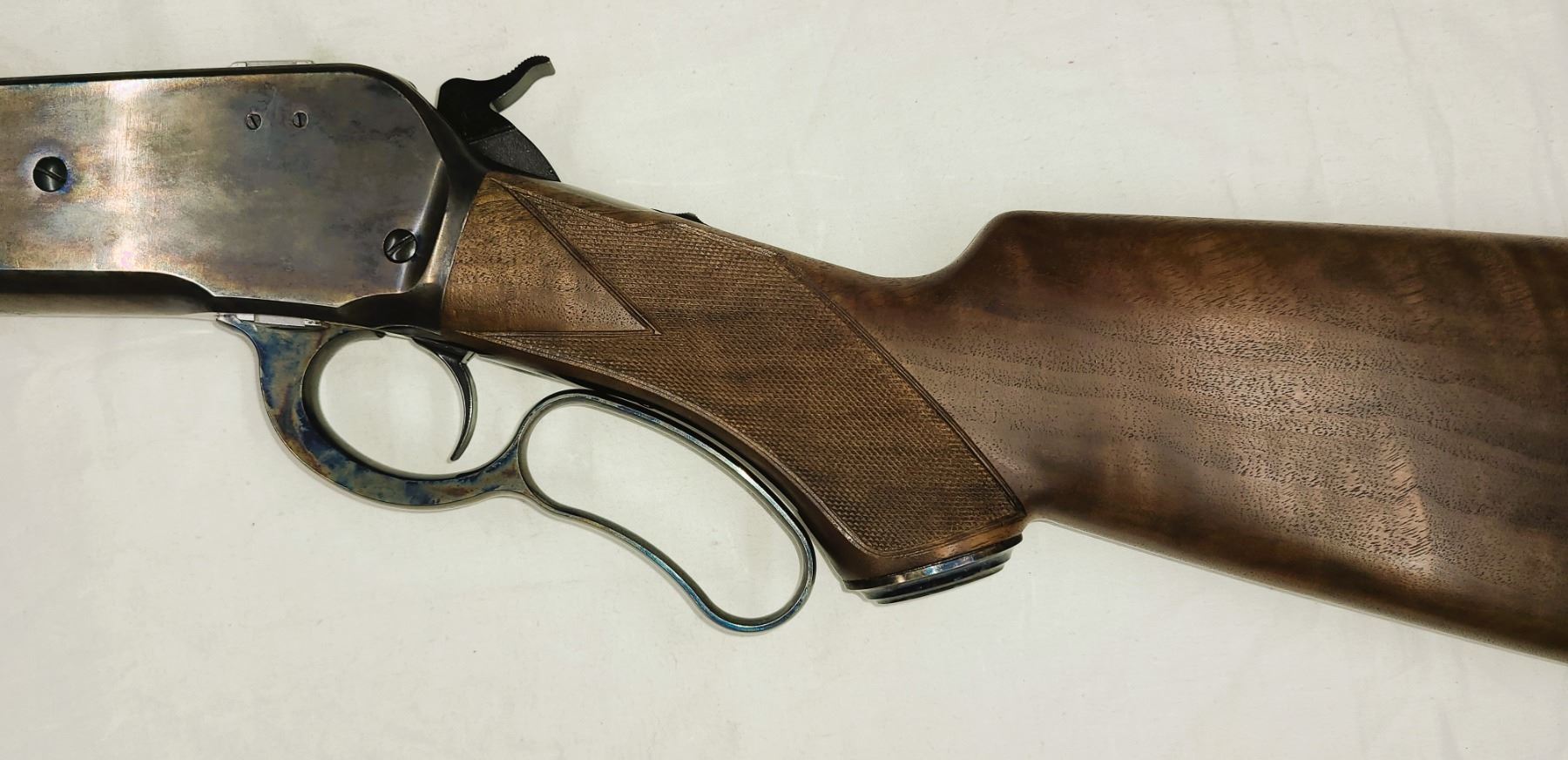 Color case hardened crescent buttplate, lever, fore-end cap, grip cap and lower
