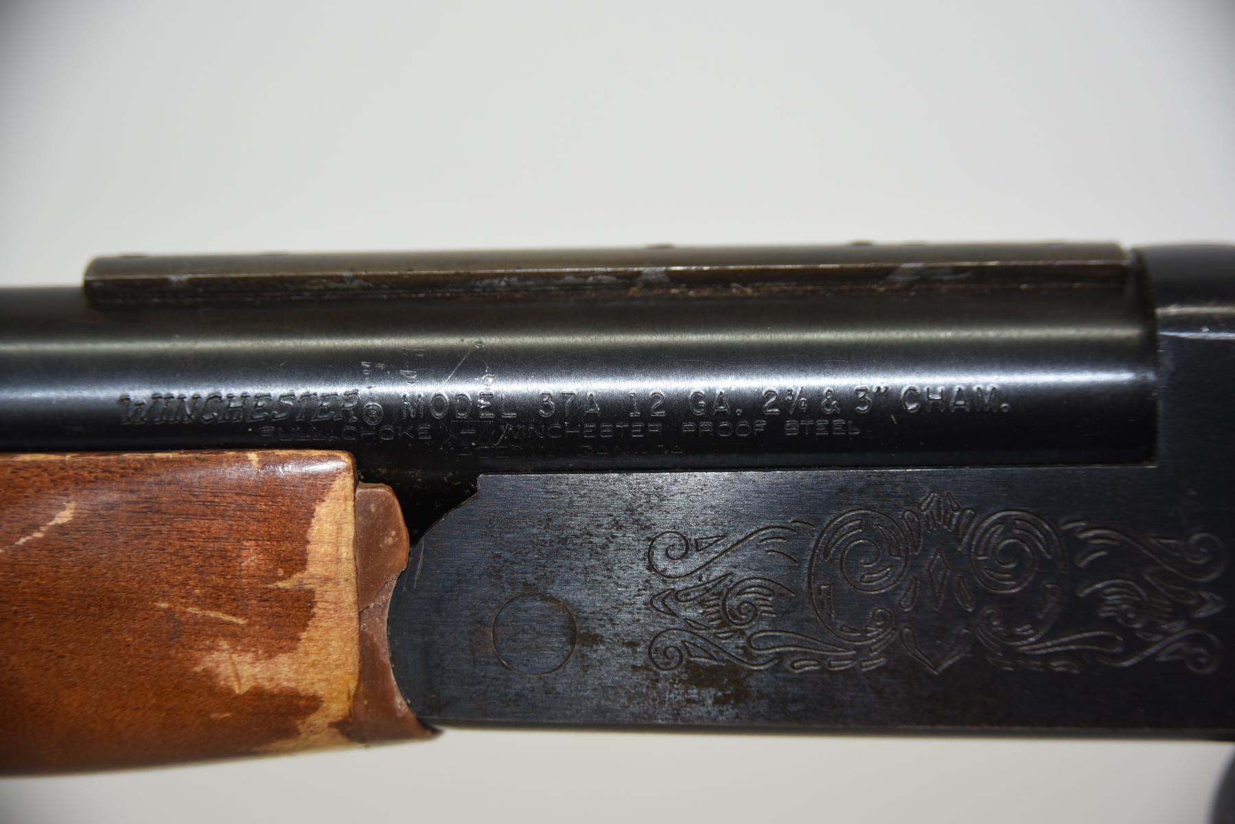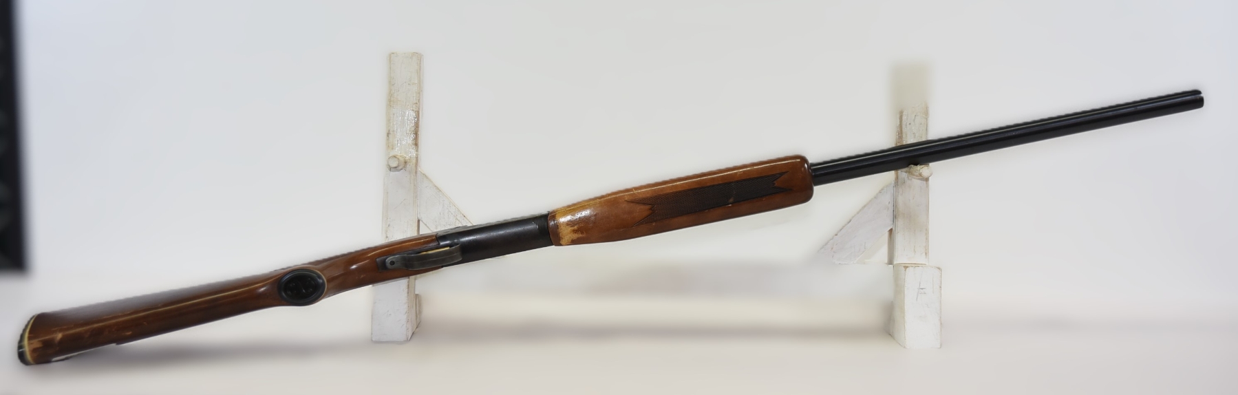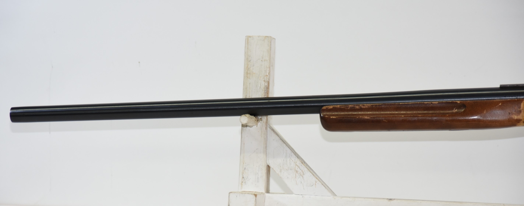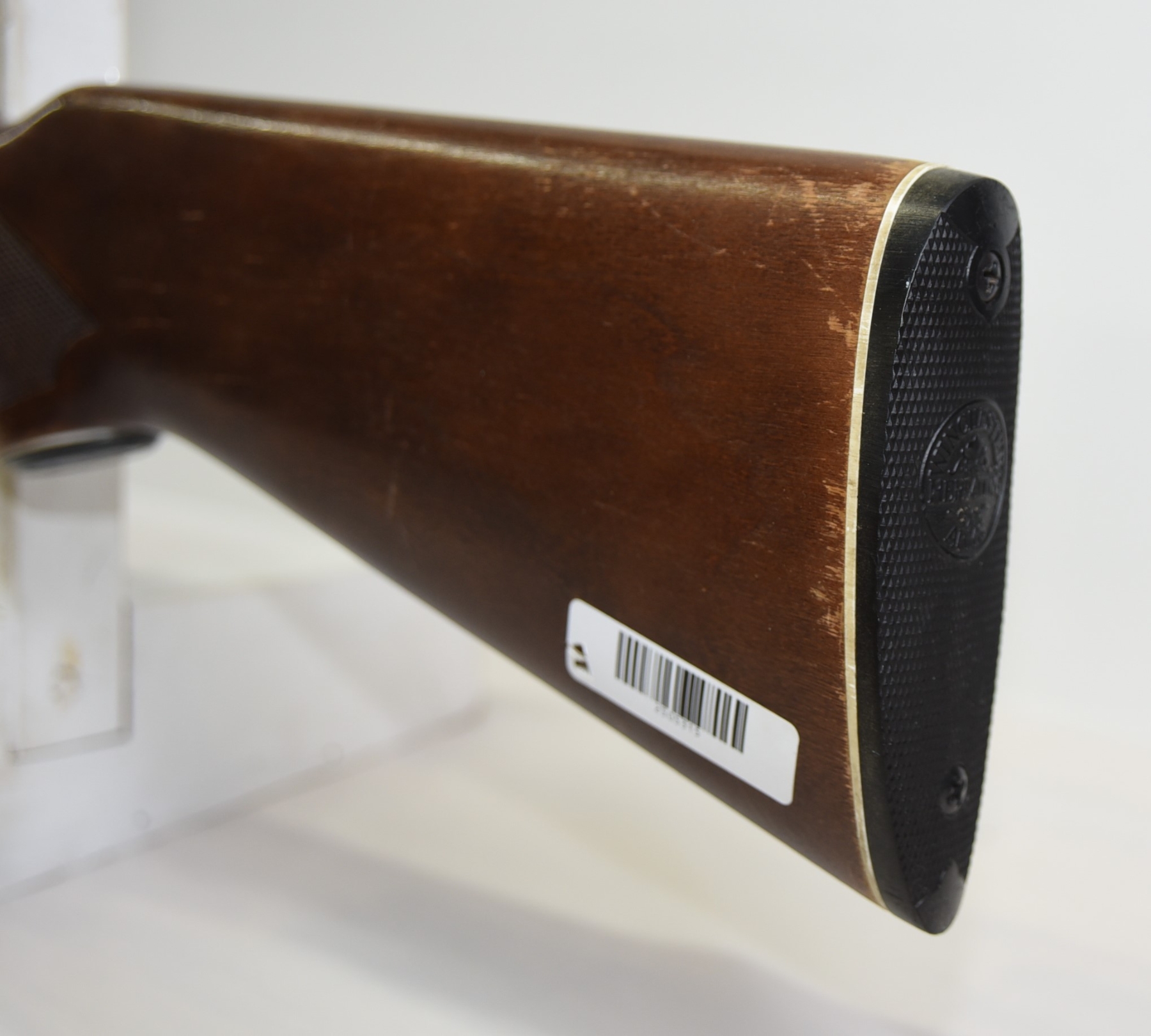 Wood stock shows lots of finish scratches, scuffs, few light dents; condition is good.