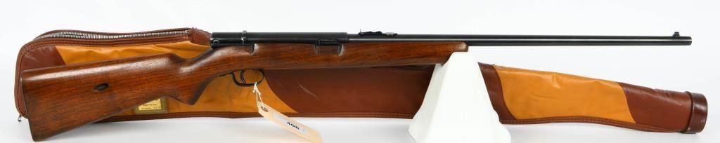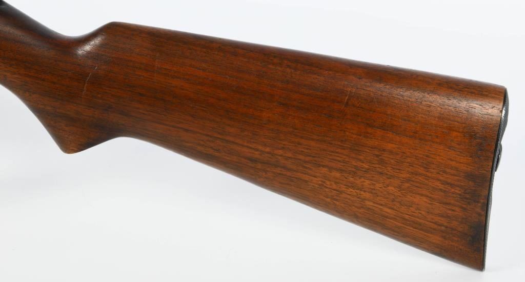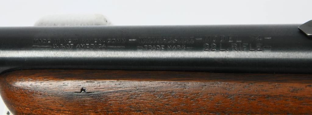 Introducing the Winchester Model 74 Semi-Automatic Rifle, a classic firearm chambered in .22 LR and steeped in history. This particular rifle, with Serial #207539 dating back to 1949, reflects the craftsmanship and design of an earlier era. Featuring a tube-fed design, this Winchester Model 74 offers a timeless approach to feeding ammunition, adding to its nostalgic appeal. The .22 LR caliber provides a versatile and enjoyable shooting experience, suitable for various purposes, from plinking to small game hunting. Appearing in great condition, this Winchester Model 74 showcases the care it has received over the years. To further protect this piece of history, it comes in a padded zippered soft case, enhancing its storage and transportation capabilities. Whether you're a collector fascinated by vintage firearms or a shooter appreciating the reliability of classic semi-automatic rifles, this Winchester Model 74 in .22 LR offers a compelling option. Bid now to secure this Winchester Model 74 Semi-Automatic Rifle, chambered in .22 LR, with Serial #207539 dating to 1949, and presented in great condition with a padded zippered soft case. Own a piece of firearms history that has stood the test of time.