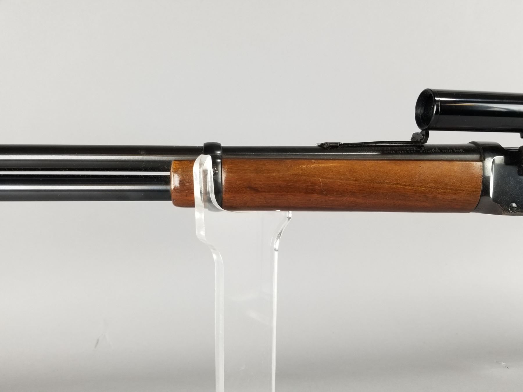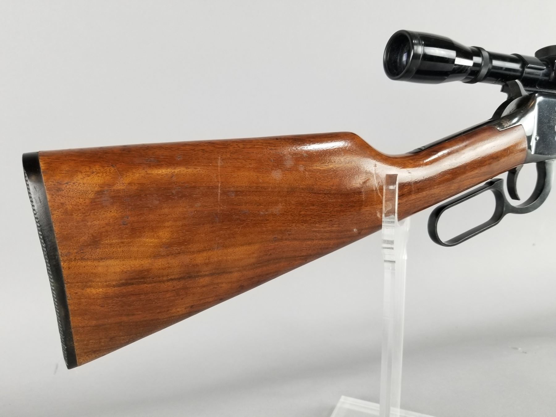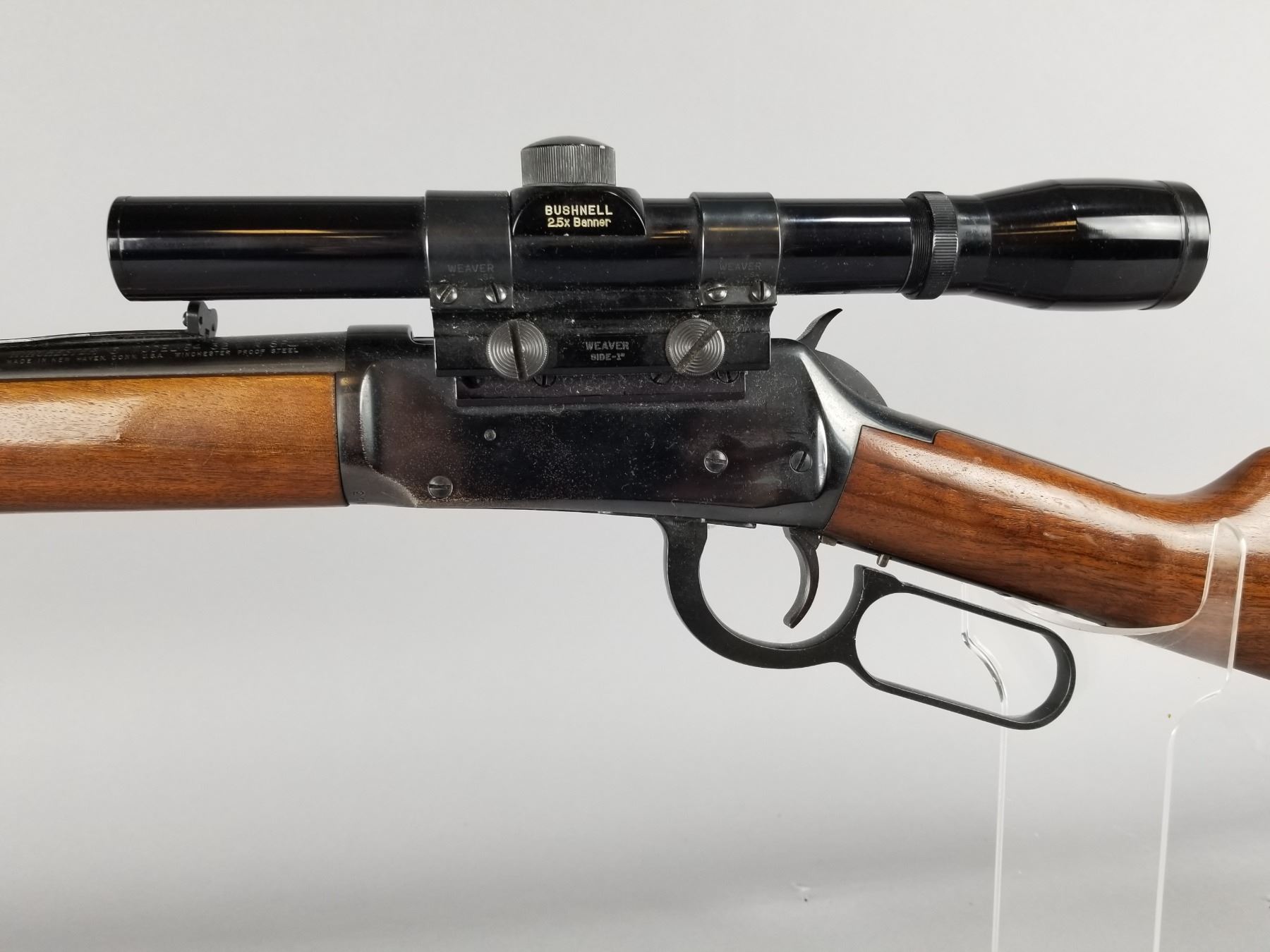 Drilled and tapped on left side. Weaver mount with Bushnell 2x scope. Post-64 production. Rear sight is missing the elevator. Condition: 85% blue. Maker: Winchester Model: 94 Caliber/Gauge: .32 Win-Spl SN: 33501153 Type: Rifle NICS Required?: YES