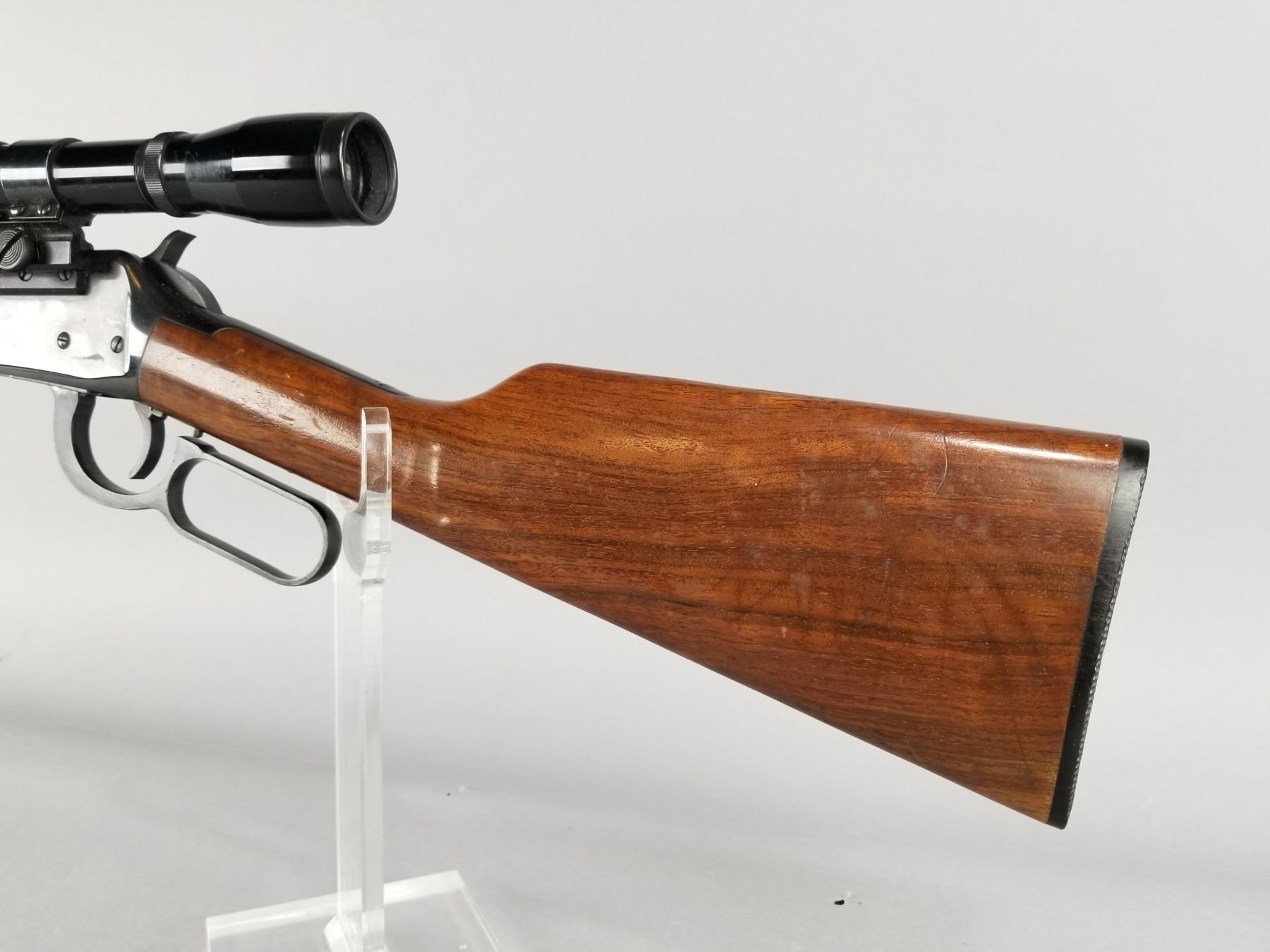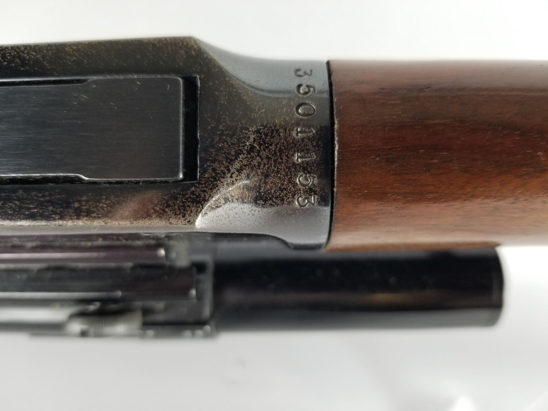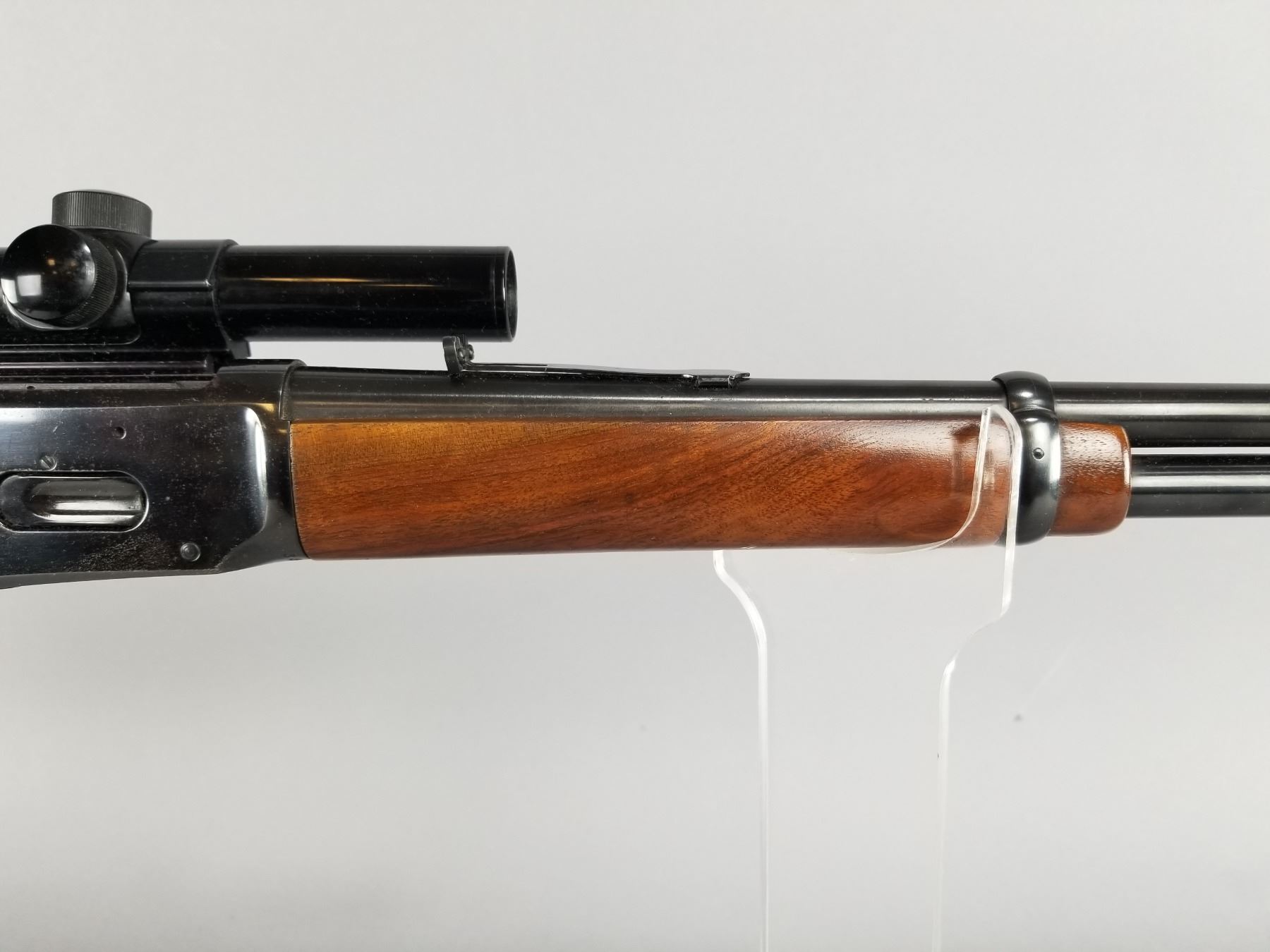 Drilled and tapped on left side. Weaver mount with Bushnell 2x scope. Post-64 production. Rear sight is missing the elevator. Condition: 85% blue. Maker: Winchester Model: 94 Caliber/Gauge: .32 Win-Spl SN: 33501153 Type: Rifle NICS Required?: YES