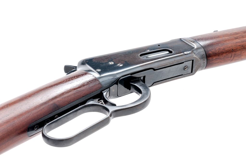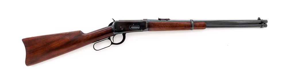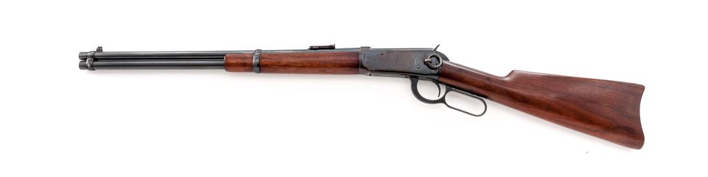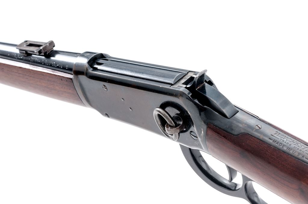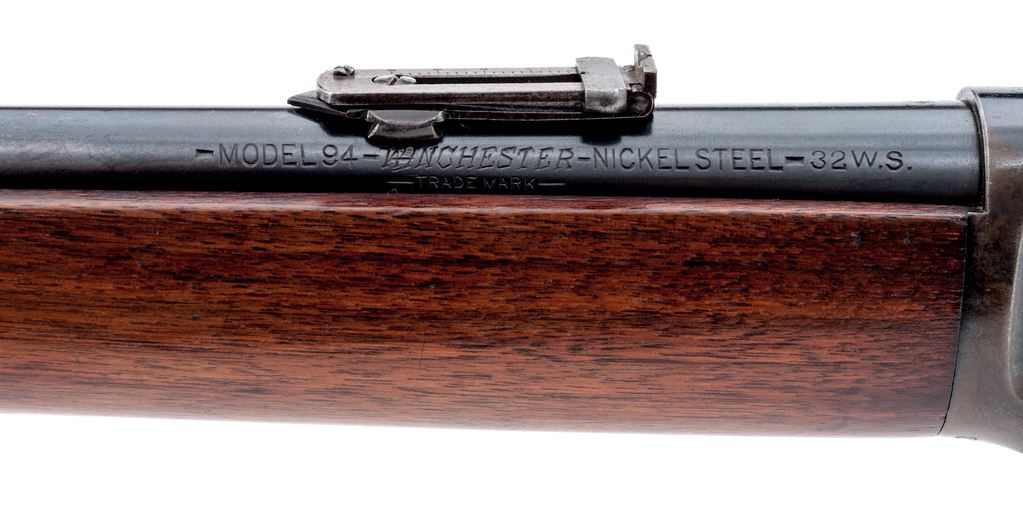 Winchester Model 94 Lever Action Saddle Ring Carbine, #1066013, .32 Win. Spec. CF cal., 20'' round barrel with pinned-blade front and adjustable-leaf rear sights, marked with maker's name, model, caliber and ''Nickel Steel'' at left, oval proof at breech, has full-length mag tube below; receiver has top ejection, bottom operating lever, left-side saddle ring and stud; two-piece varnished walnut stocks, the forend retained by a steel band, the buttstock with plain carbine buttplate. Mfg'd ca. 1929, with full-blued finish. Condition is fine+ retaining approx. 94% deep barrel/mag tube blue, 40% on receiver, buttplate smooth gunmetal gray. Stocks are smooth and sound showing minor handling marks and most original finish. Action is crisp; bore is brilliant with blue and sharp rifling. Est.: $900-$1,200. (C&R)
