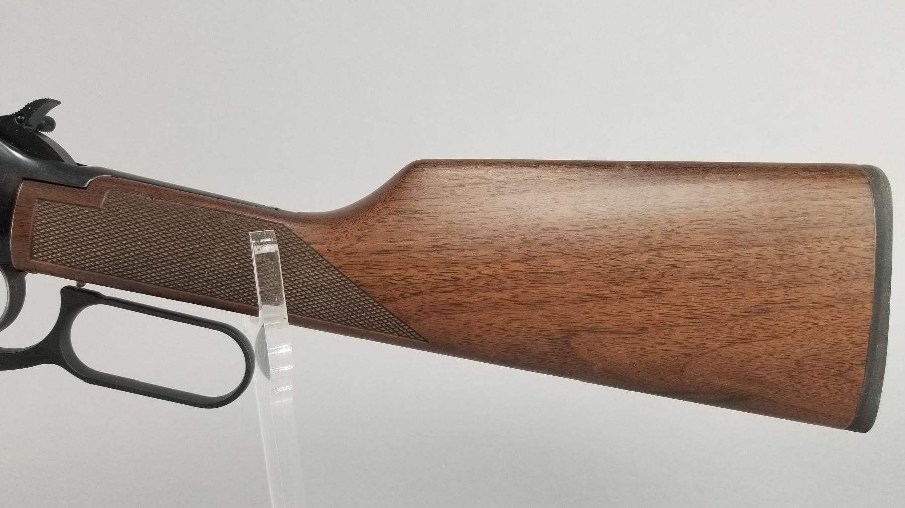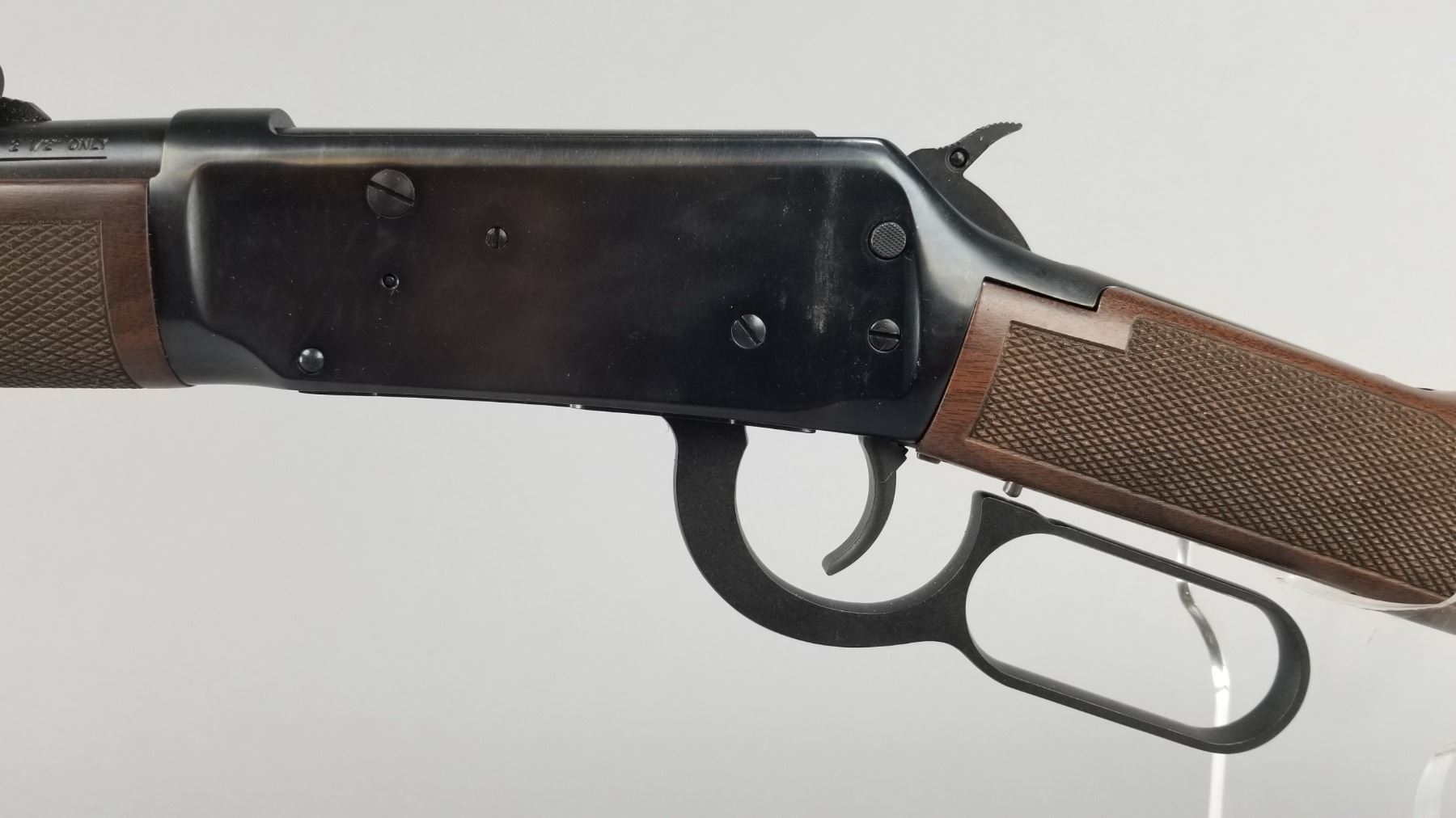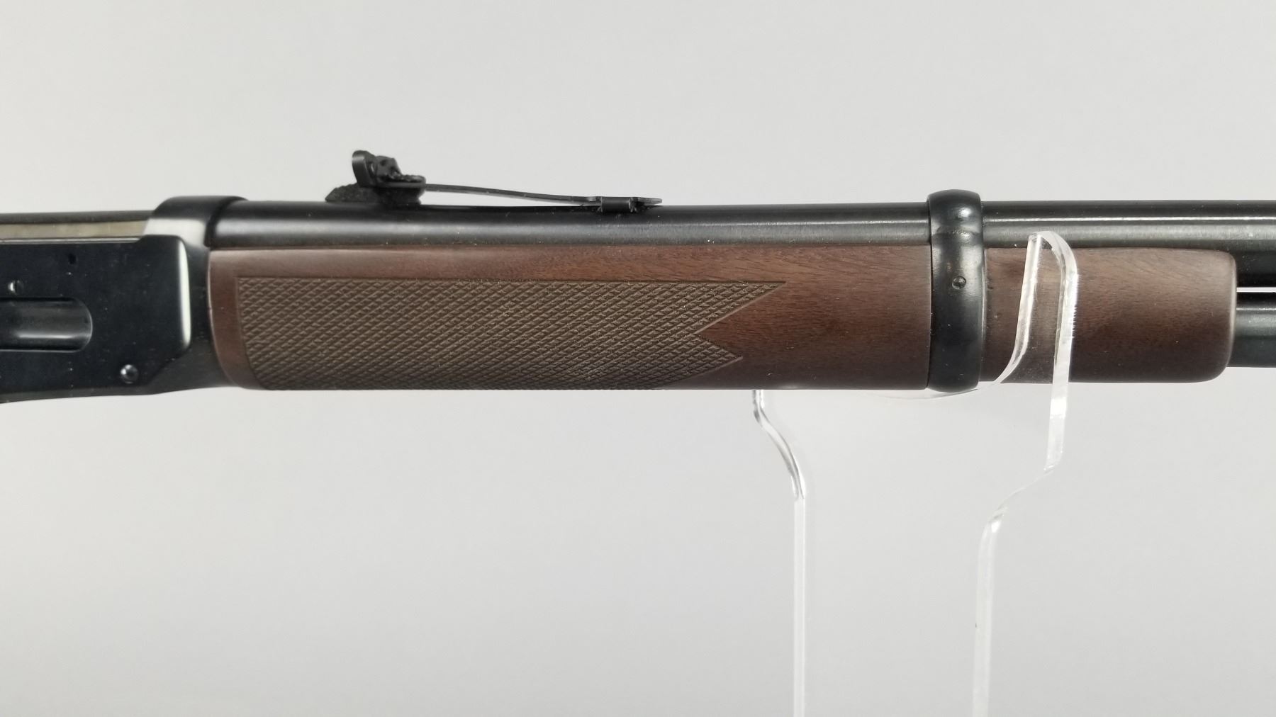 Blued barrel and receiver with black walnut checkered stock and forearm. High vis ramp style front sight with adjustable ramp style rear sight. Lever action and chambered only for 2.5" shells. Includes original Winchester box, paperwork, and hang tag. Condition: New in box. Maker: Winchester Model: 9410 Caliber/Gauge: .410 Chamber: 2.5" Only SN: SG05123 Barrel: 24" Type: Shotgun NICS Required?: YES