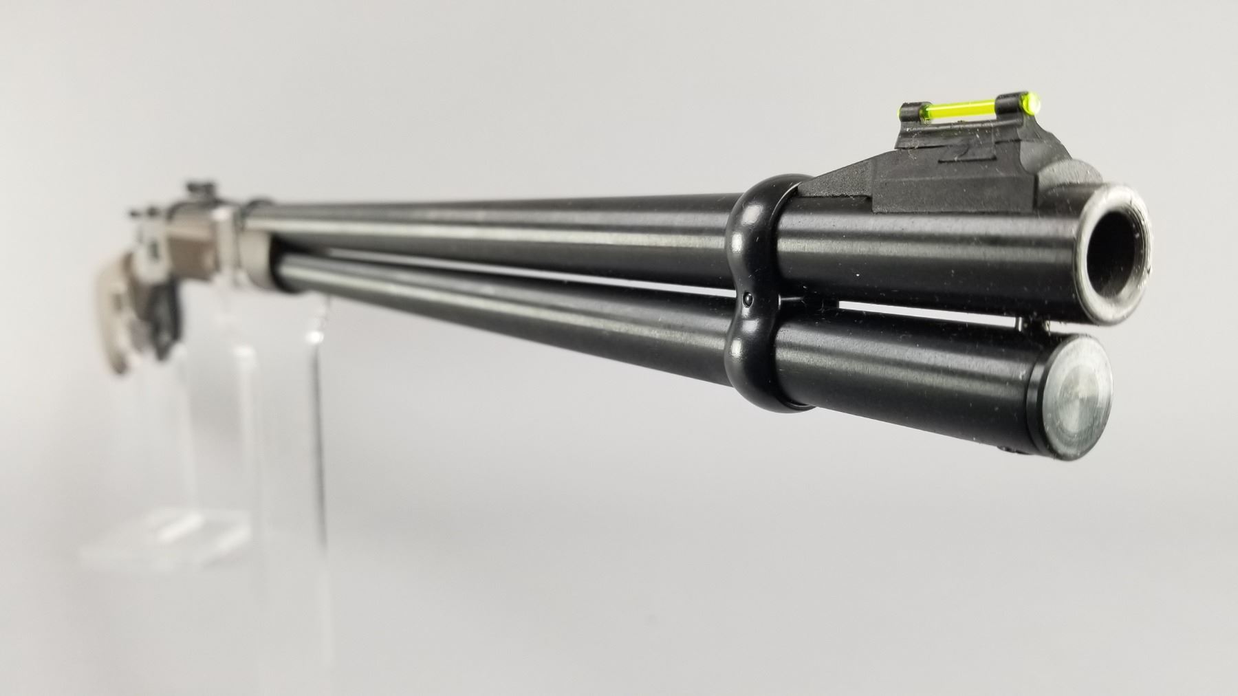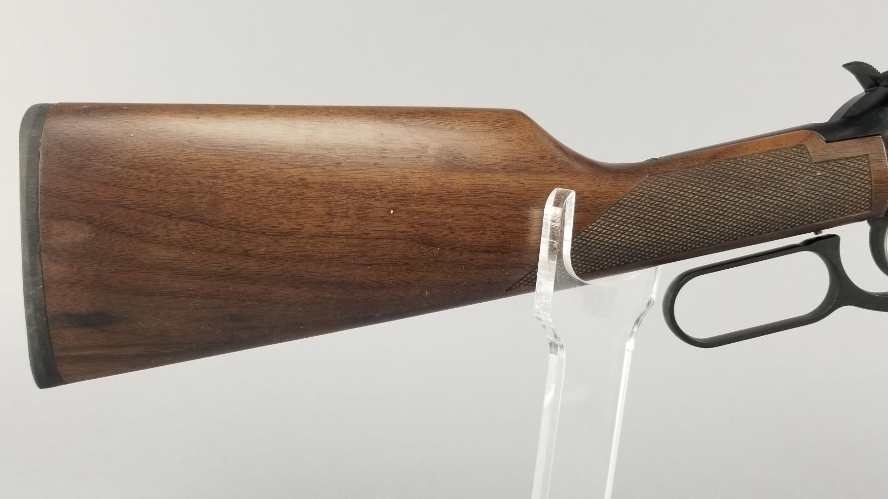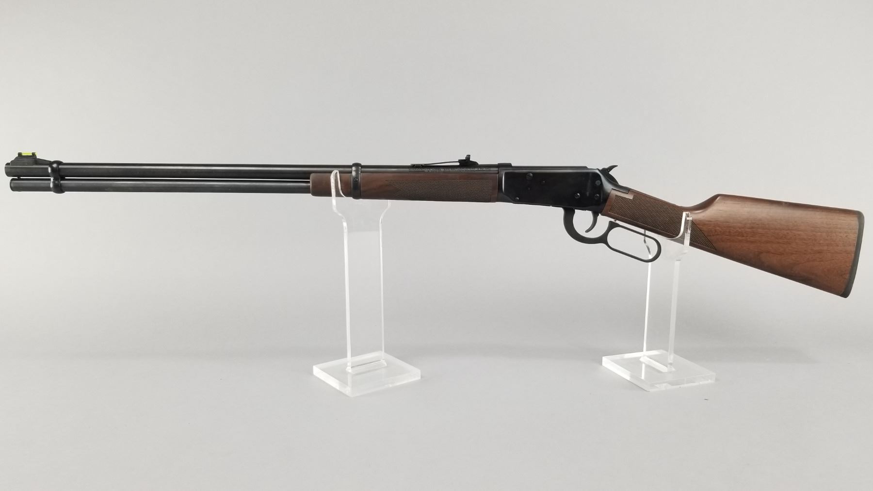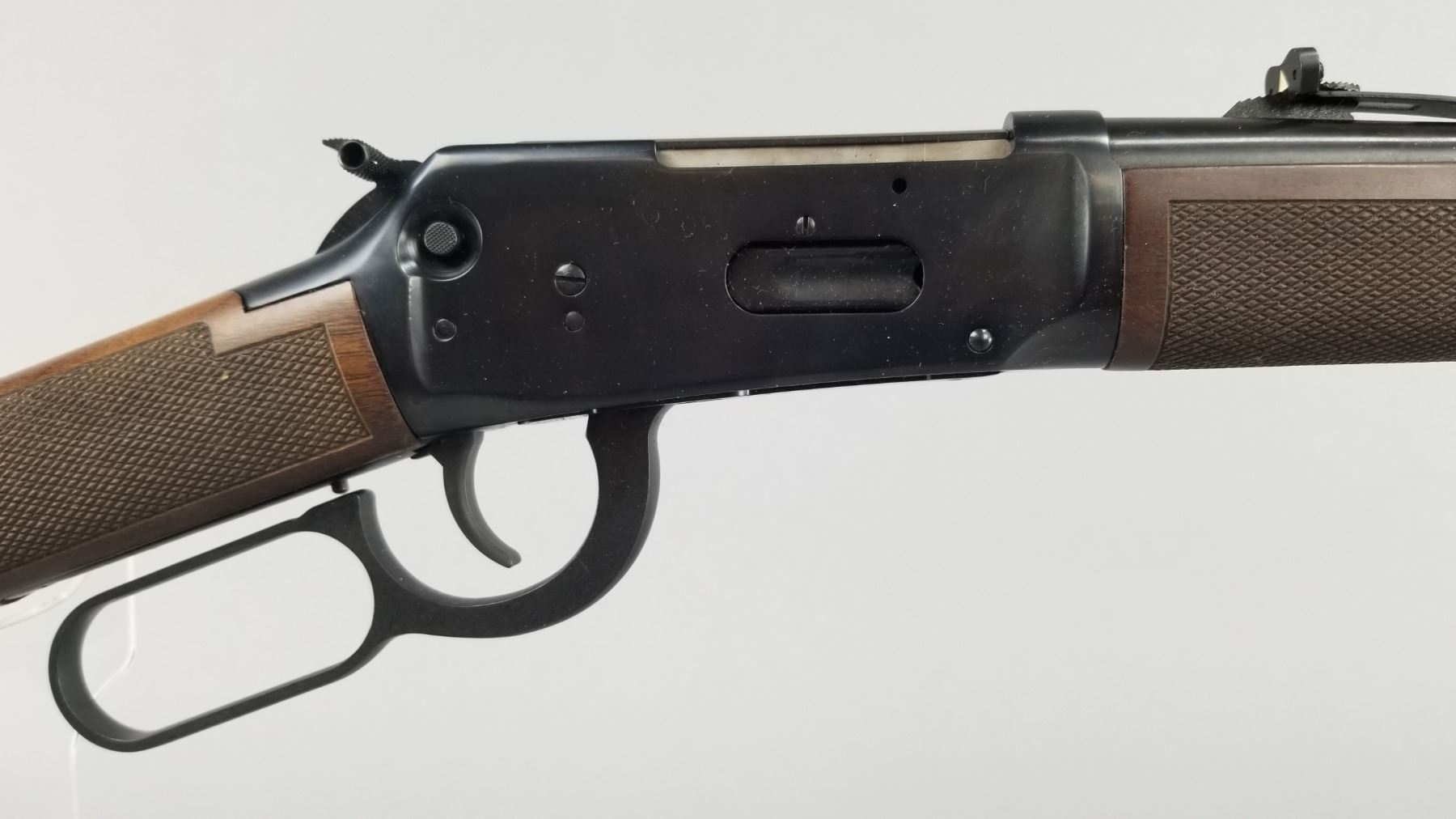 Blued barrel and receiver with black walnut checkered stock and forearm. High vis ramp style front sight with adjustable ramp style rear sight. Lever action and chambered only for 2.5" shells. Includes original Winchester box, paperwork, and hang tag. Condition: New in box. Maker: Winchester Model: 9410 Caliber/Gauge: .410 Chamber: 2.5" Only SN: SG05123 Barrel: 24" Type: Shotgun NICS Required?: YES