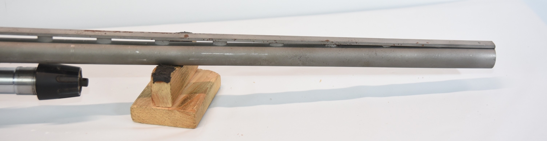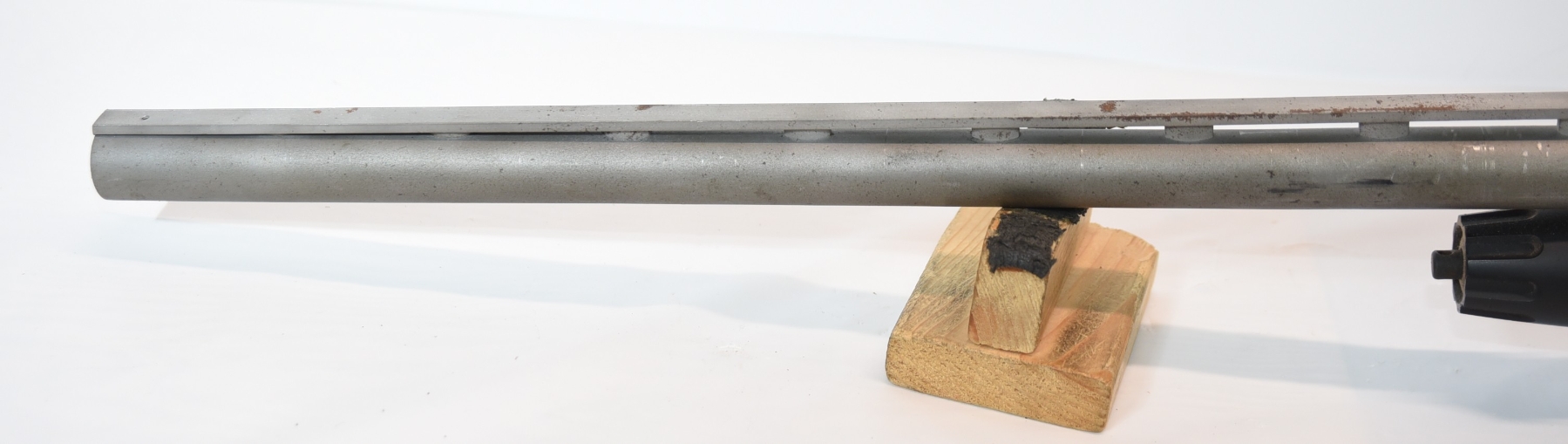 Metal finish shows finish wear, scratches, scuffs, vent rib is crooked; condition is fair.